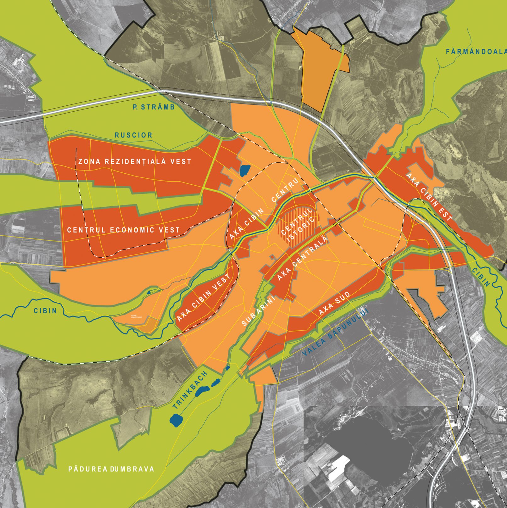 Grundlage für den Flächennutzungsplan Sibiu ist das Stadtentwicklungskonzept, das Bestandteil der früheren Entwicklungsrichtlinien, Managementpläne und Programme war; der FNP Sibiu wurde gemäß PATN, PATJ Sibiu und PATZ Zona Periurbană Sibiu erstellt.