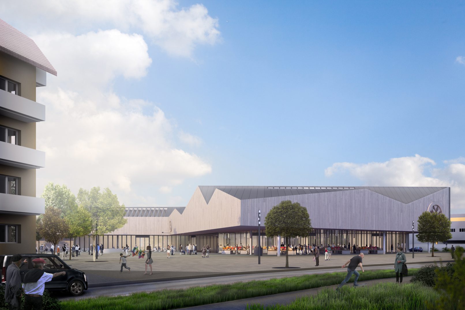 Der Vorschlag fuer eine neue Markthalle wird aus dem städtebaulichen Kontext generiert. Der vorgeschlagene Baukörper und die ausdifferenzierten öffentlichen Freiräume reagieren auf die unterschiedlichen räumlichen Charaktere und funktionalen Ansprüche der verschiedenen Seiten der Halle, die etwa von Wohnnutzung, einer stark befahrenen Umgehungsstraße oder einem Gewerbegebiet geprägt sind. Dabei erzeugt die Gestaltung des Gebäudes ein einheitliches Bild.