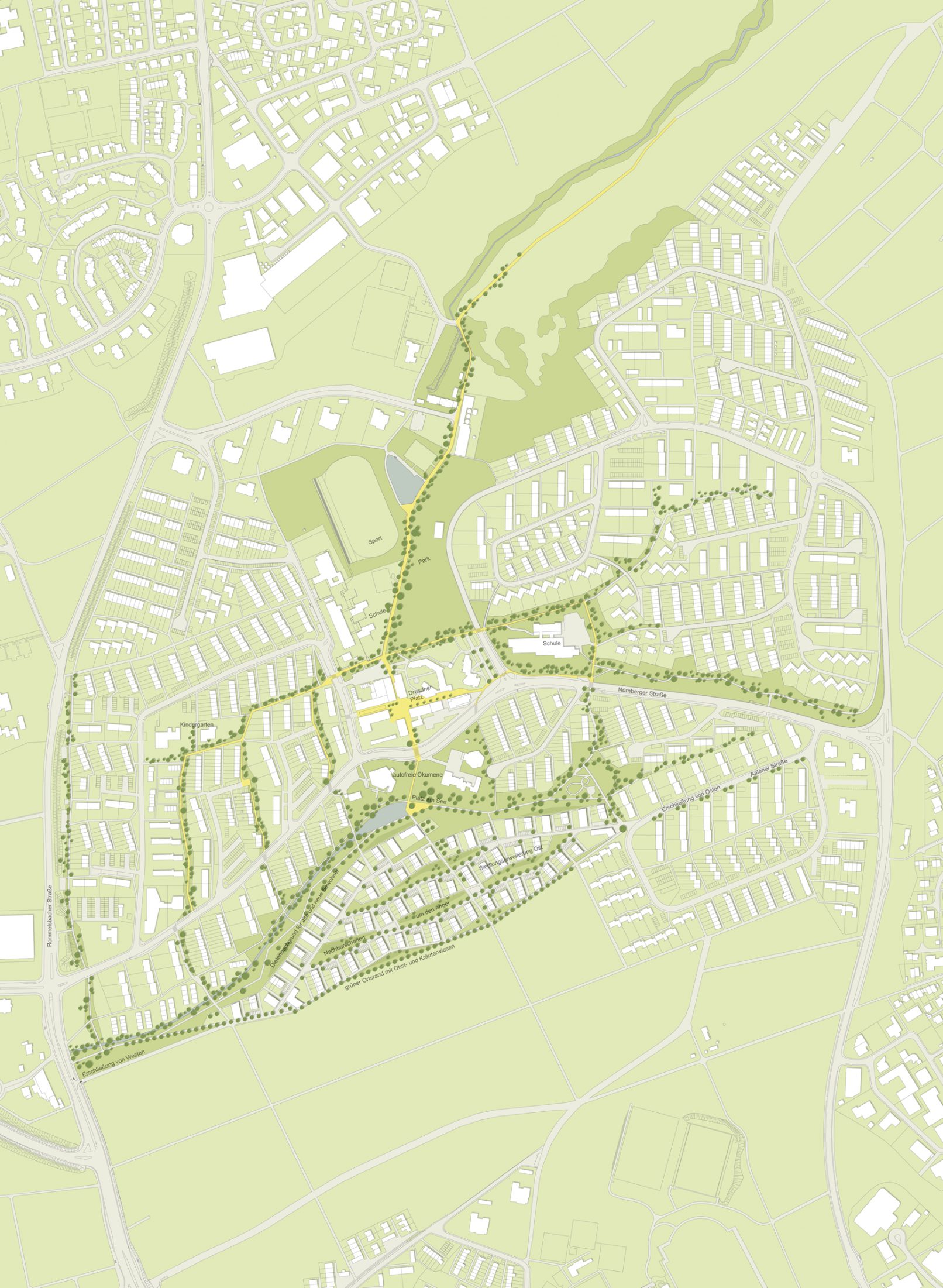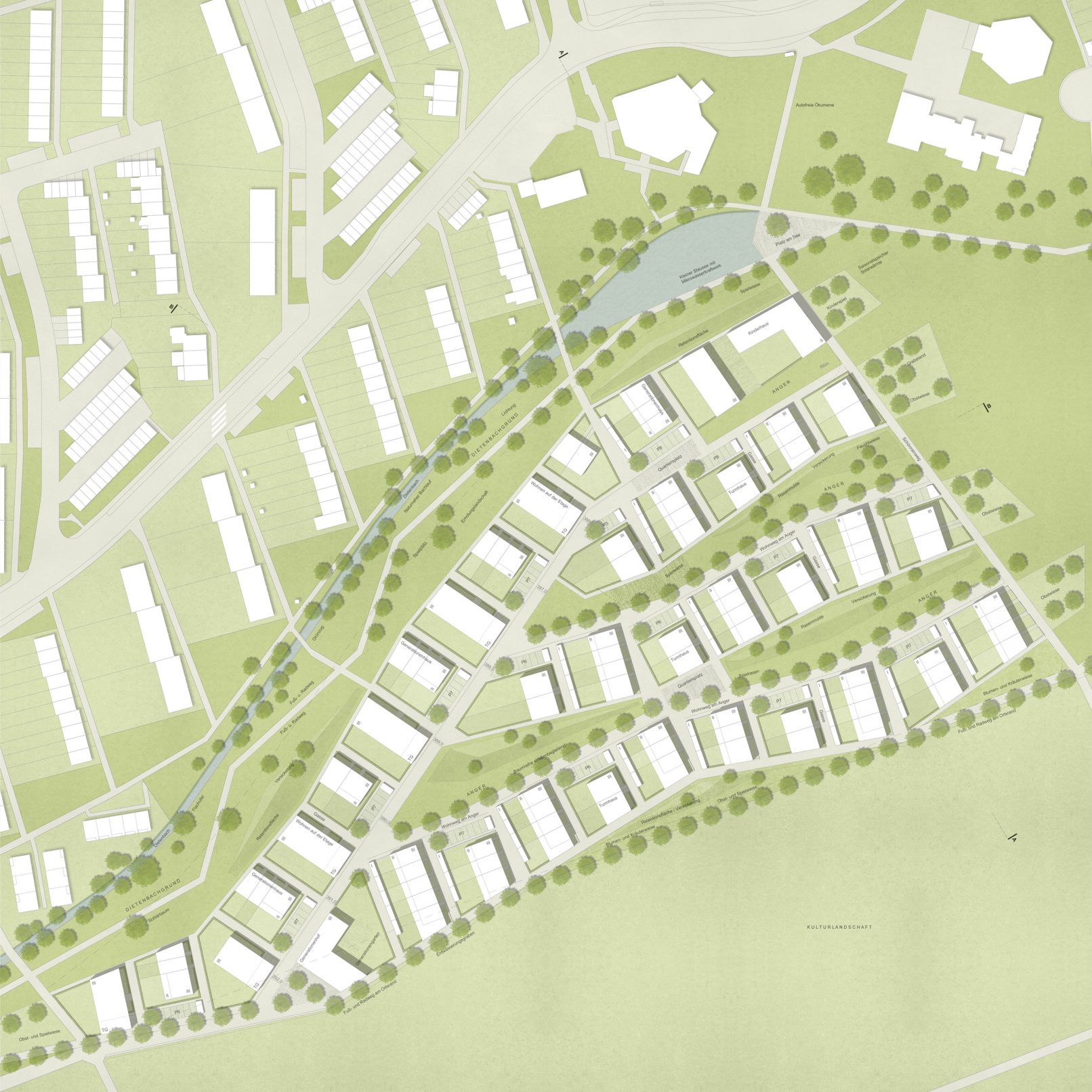 – Kleine, durchgrünte Nachbarschaften mit variablen Haus- und Wohnungstypen