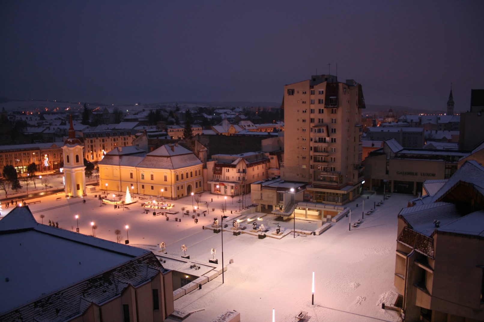 Das Ensemble des Theaterplatzes in Tîrgu Mureş (Neumarkt) stammt aus den frühen 1970er Jahren. Es gilt als eines der gelungensten Beispiele der neuen sozialistischen Stadtzentren in Rumänien. Die neuen Gebäude wie Stadttheater, Wohn- und Geschäftshäuser integrieren um den öffentlichen Raum mehrere Baudenkmäler, wie den Franziskaner-Turm und das Ethnografische Museum.