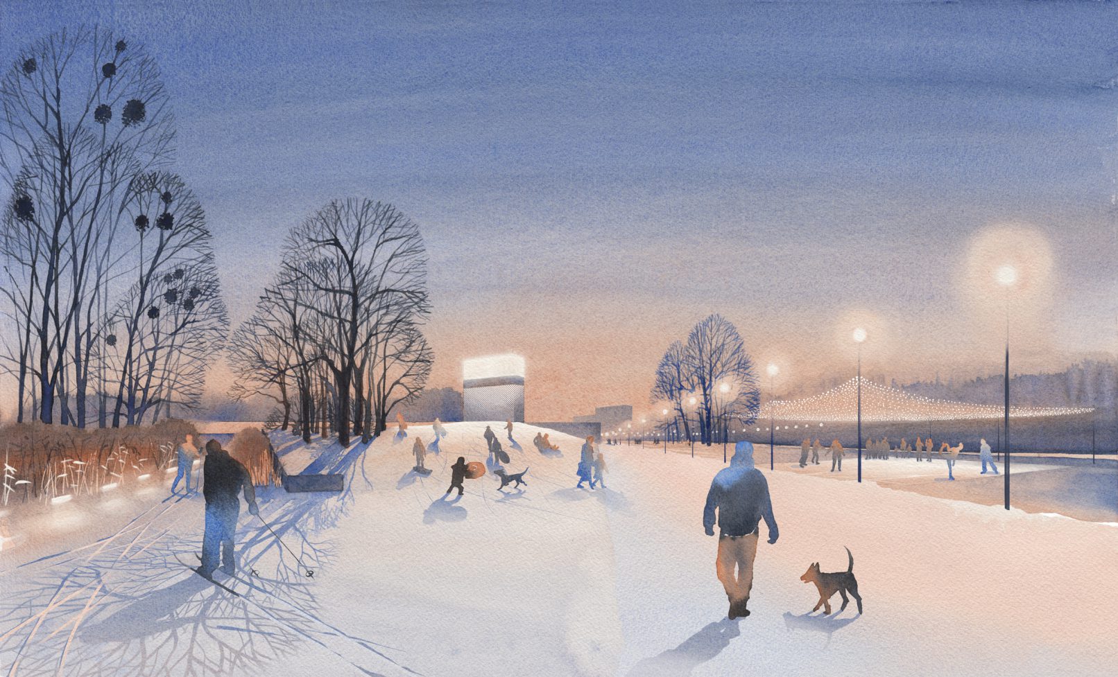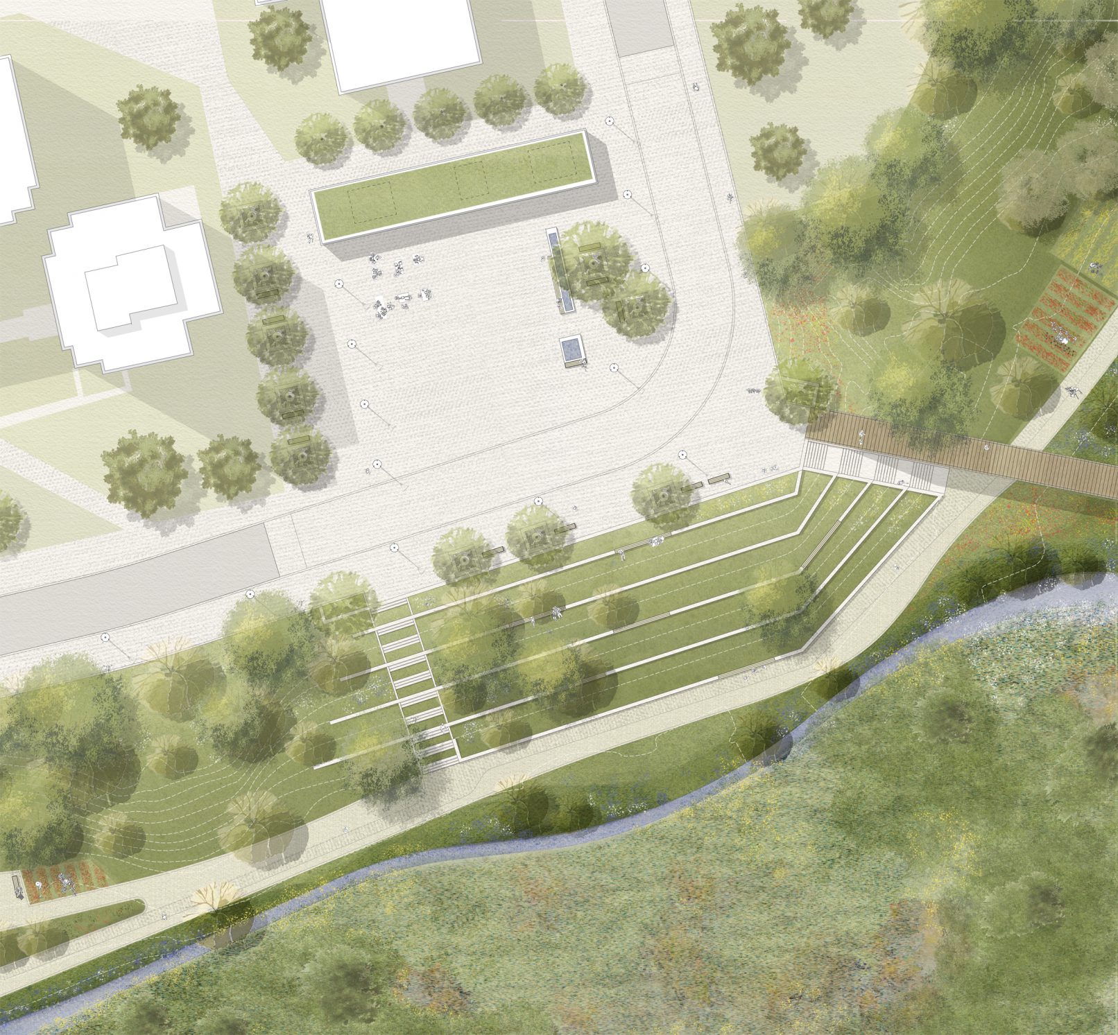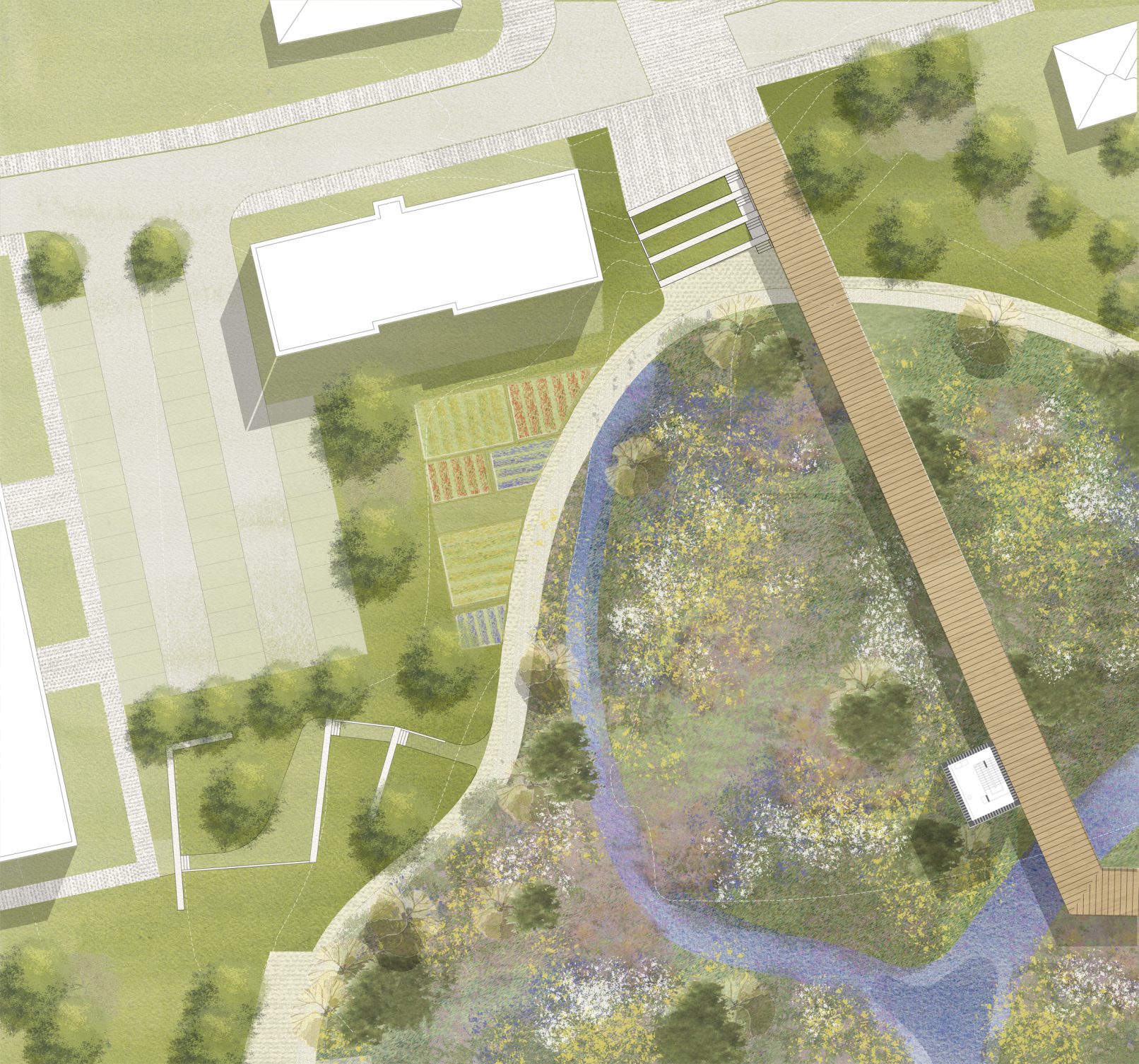 Parcul Est articulează punctul de întâlnire al văii Becașului cu zonele mlăștinoase din Gheorgheni. Fosta pepinieră conectează cele două habitate sălbatice și unește comunitățile urbane învecinate. Zonele mlăștinoase și umede sunt recondiționate, extinse și protejate pentru a deveni nucleul noului parc, prin biodiversitatea lor remarcabilă. Fosta pepinieră, care se află între zonele mlăștinoase și pârâul Becaș, este păstrată, făcută accesibilă și transformată într-o rețea de garduri vii, plantații, păduri mici și luminișuri. Această rețea de spații verzi publice de diferite dimensiuni și atmosfere oferă o flexibilitate largă în utilizare și permite dezvoltarea în etape a parcului Est, în timp ce suprafețe mai mari sunt păstrate ca viitoare rezerve.