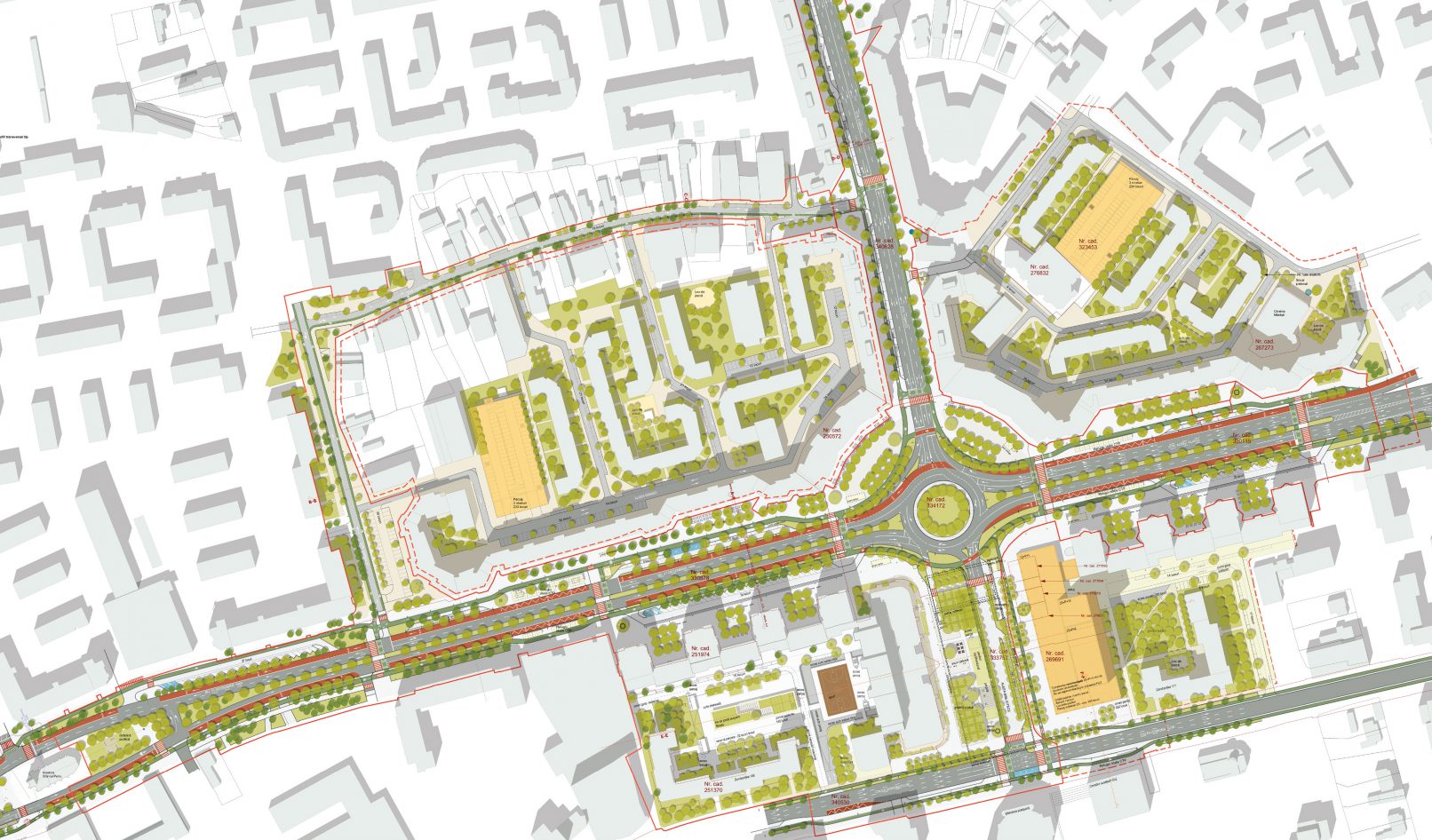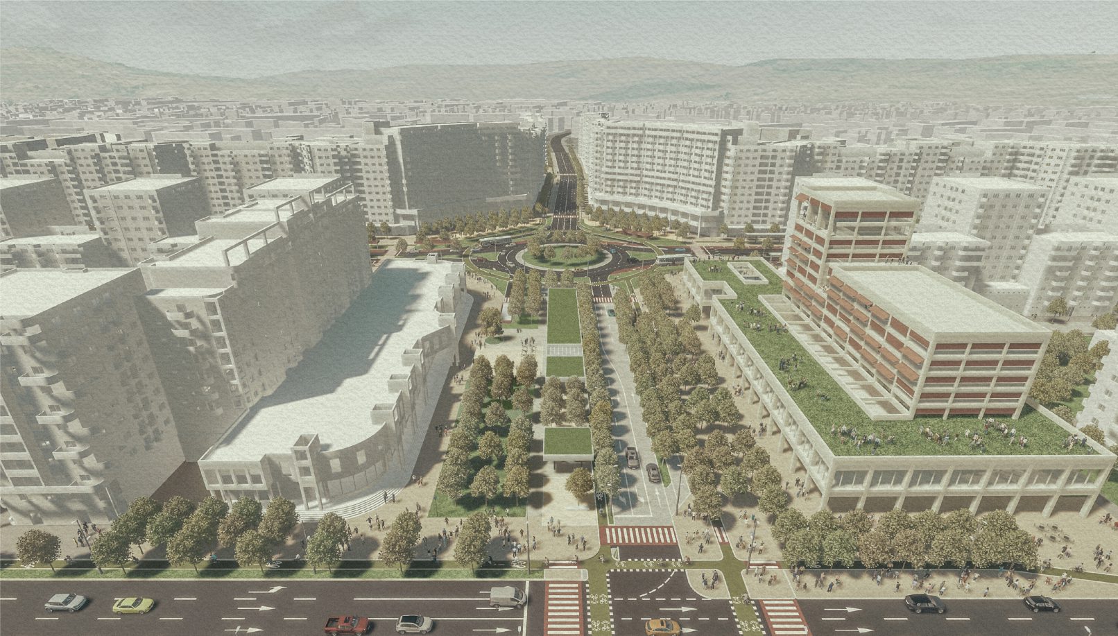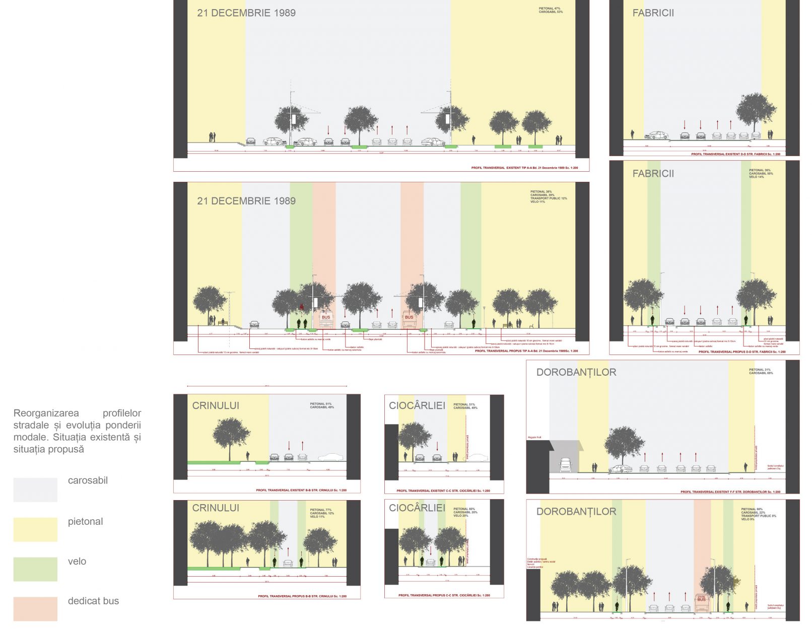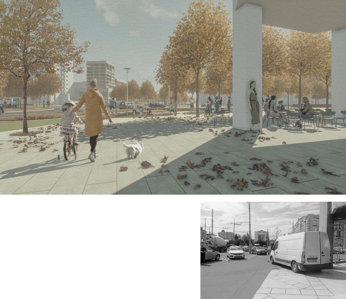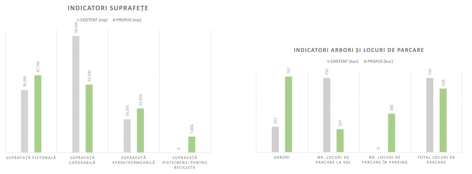 Regenerarea centrului de cartier Mărăști mizează pe concentrarea mașinilor în cinci parcaje noi de diferite tipuri, adaptate amplasamentelor disponibile. Reorganizarea spațiului public astfel eliberat prioritizează mobilitatea sustenabilă: pietoni, biciclete și transport public pe culoar dedicat. Suprafața spațiilor verzi este extinsă cu 30%. Un imobil cu locuințe sociale și dotări publice de cartier reconfigurează frontul estic al Pieței Mărăști, în încercarea de a reda coerență spațială ansamblului.